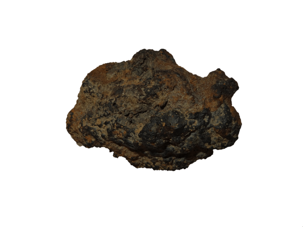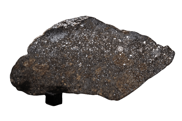 Après son passage dans l’atmosphère terrestre, une météorite est recouverte d’une croûte de fusion noire dû aux forces de frictions et de compressions des gaz atmosphériques qui ont chauffés sa surface.