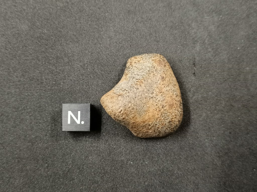 Gao Guenie, complète, orientée. Météorite de type chondrite. H5. TKW = ? 1960 , BURKINA FASO. Dimensions 31,6 * 31,1 * 18,5 (en mm) Masse 28,1 g Magnifique orientée avec bourrelet d'orientation! 135 euros * Ref : GAOH5CO281 * Facture, certificat d'authenticité et frais de port compris.