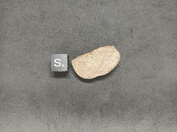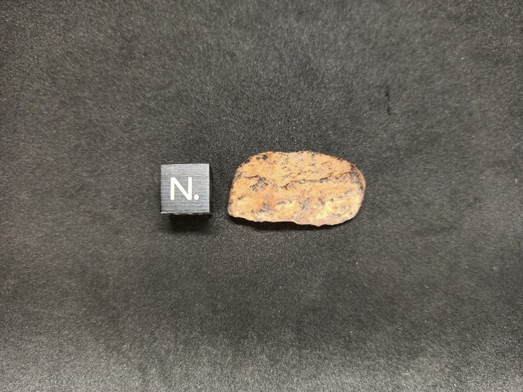 Gao Guenie. Météorite de type Chondrite. H 5. Burkina Faso, 1960 Dimensions 30,0* 16,8 * 9,3 (en mm) Masse 7.1 g Joli talon avec chondres de fer bien visibles 25 euros * Ref : GAOH5EC71 * Boite de présentation, facture, certificat d'authenticité et frais de port compris.