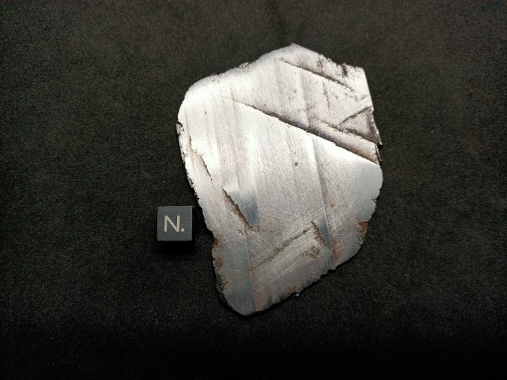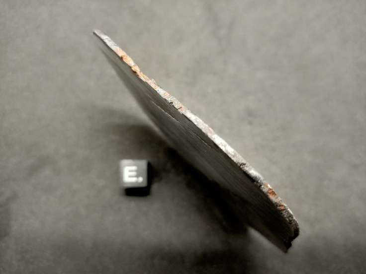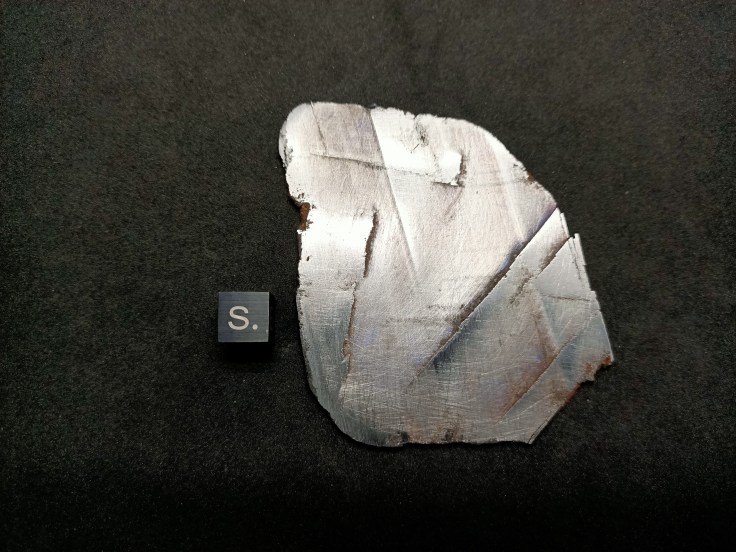 Muonionalusta, tranche. Météorite de type fer. IAV. TKW = 230 Kg 1906 , SUEDE Dimensions en millimètres 80.0 * 65.5 * 1.5 Masse en grammes 52.2 g Tranche idéale pour s'entrainer à révéler les figures de widmanstätten. 25 € * Référence : MUOT522 * Frais de port compris.