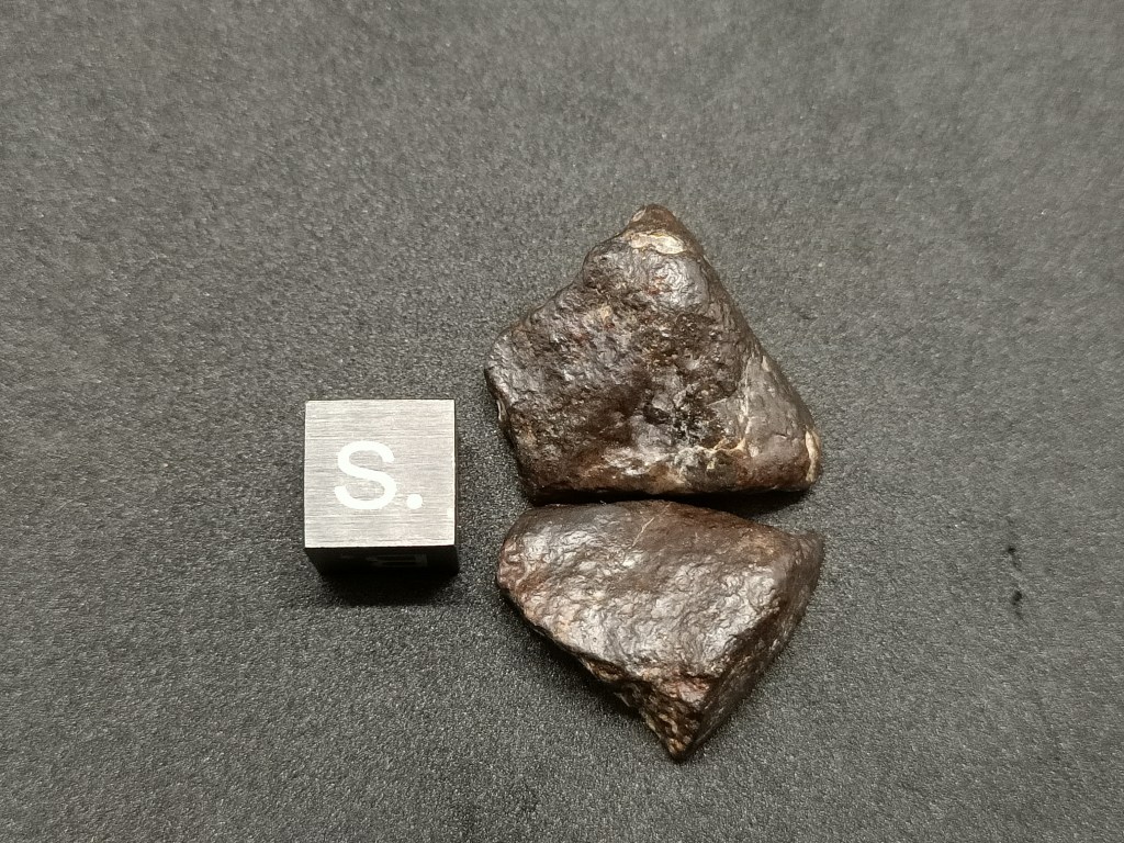 NWA 869, complète coupée en deux. Météorite de type chondrite. L 3 - 6. TKW : 2 T. 2000, Sahara. Masse 14,6 g 50 euros * Ref : CLONWA8691 * Cloche en verre, socle, facture, certificat d'authenticité et frais de port compris.