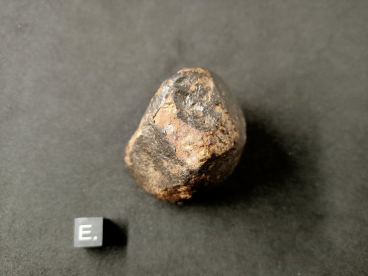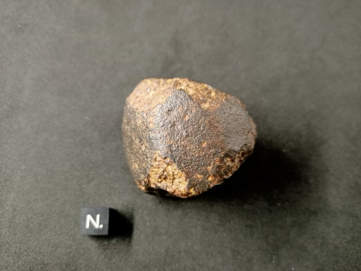 NWA XXXX. Météorite de type Chondrite. Ordinaire, probablement L 6. Sahara, 2017. Dimensions 52,2 * 46,8 * 40 (en mm) Masse 155,2 g Jolie croute éolisée recouvrant 80 % de sa surface. 130 euros * Ref : NWAX-C1552 * Facture, certificat d'authenticité et frais de port compris.