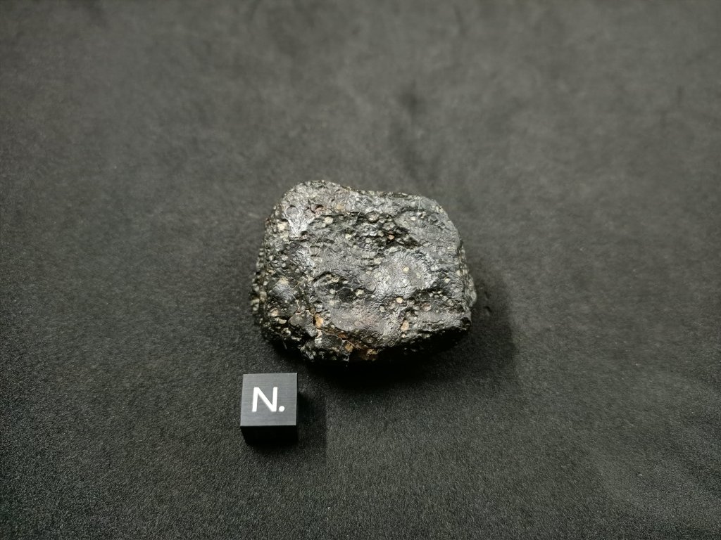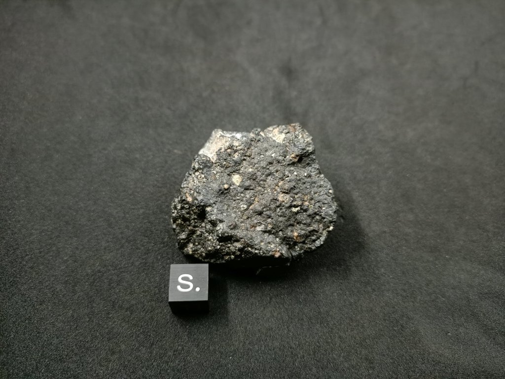 NWA XXXX, complète. Météorite de type Chondrite. Carbonée , CV 3. Maroc, 2017. Dimensions 46 * 38,8 * 26,5 (en mm) Masse 73,5 g Magnifique CV 3 avec croute vitrifiée sur 70 % de sa surface . 405 euros * Ref : NWAXCV3C735 * Facture, certificat d'authenticité et frais de port compris.