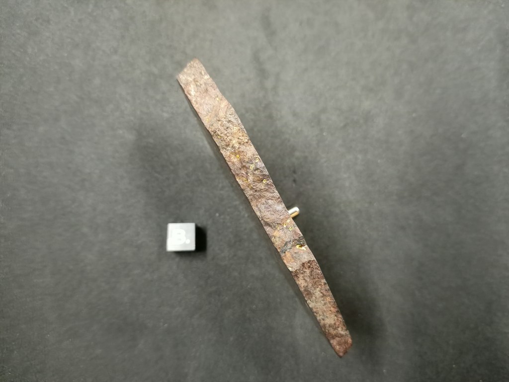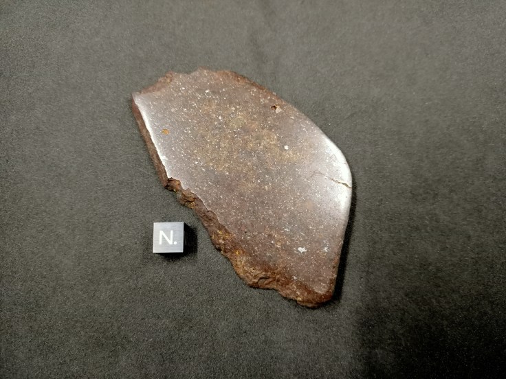 NWA XXXX, tranche. Météorite de type chondrite. Probable L 5. 2016, MAROC. Dimensions 97,5* 56,0* 8,3 (en mm) Masse 88,6 g Belle tranche polie ! 65 euros * Ref : NWAX-T886 * Facture, certificat d'authenticité et frais de port compris.