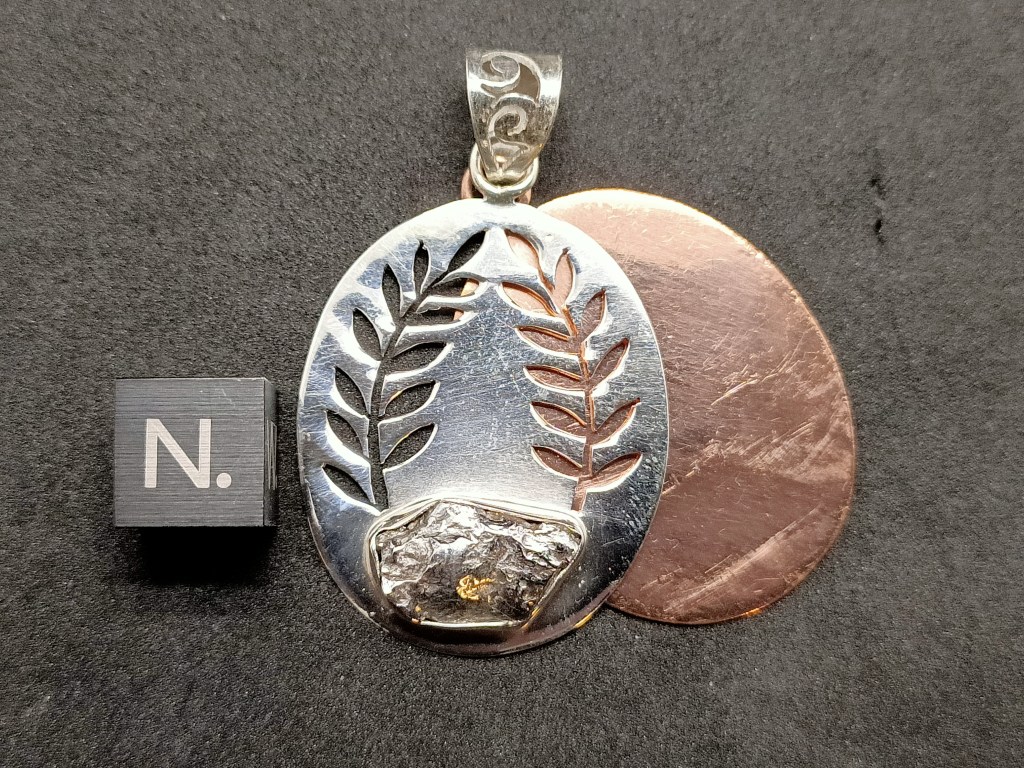 Pendentif Campo del Cielo Cuivre. Une météorite de Fer, structure en argent 925 et cuivre. Dimensions du pendentif en millimètres 39.0 * 27.0 * 5.5 Dimension du passant en millimètres 8.5 60.00 euros * Référence : PENDCAMPO32020 * Frais de port compris.