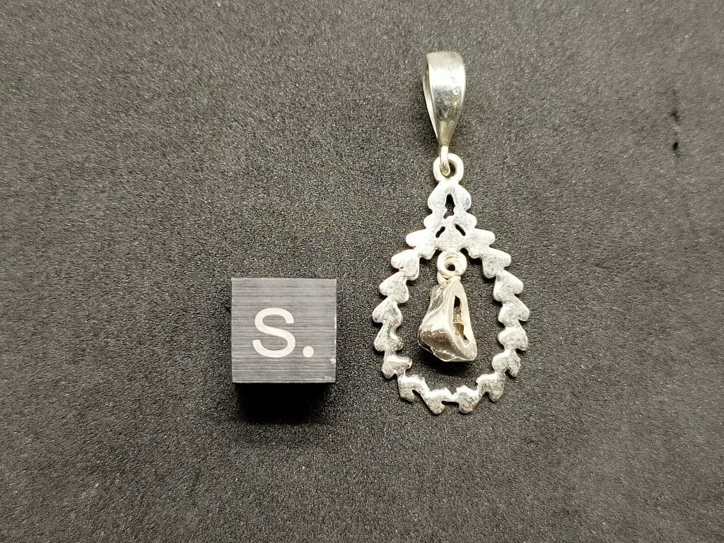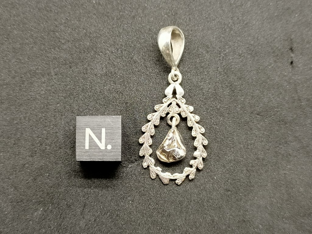 Pendentif Campo del Cielo Laurier. Une météorite de Fer et structure en argent 925. Dimensions du pendentif en millimètres 23.5 * 14.5 * 4.0 Dimension du passant en millimètres 7.5 60.00 euros * Référence: PENDCAMPO22020 * Frais de port compris.