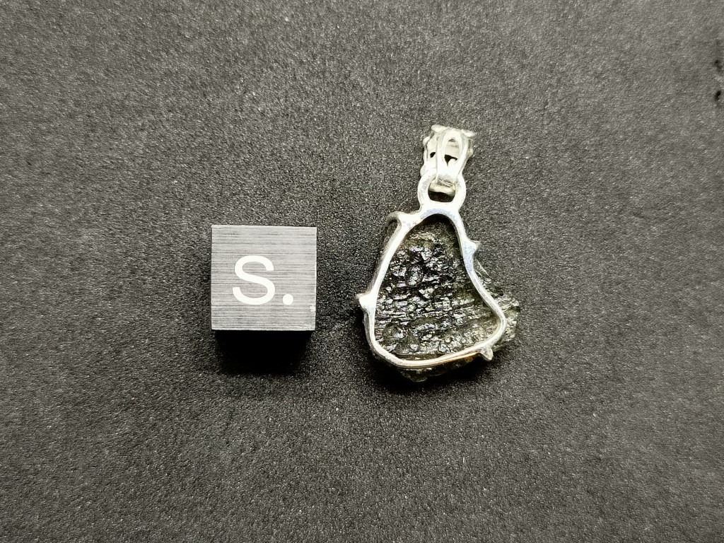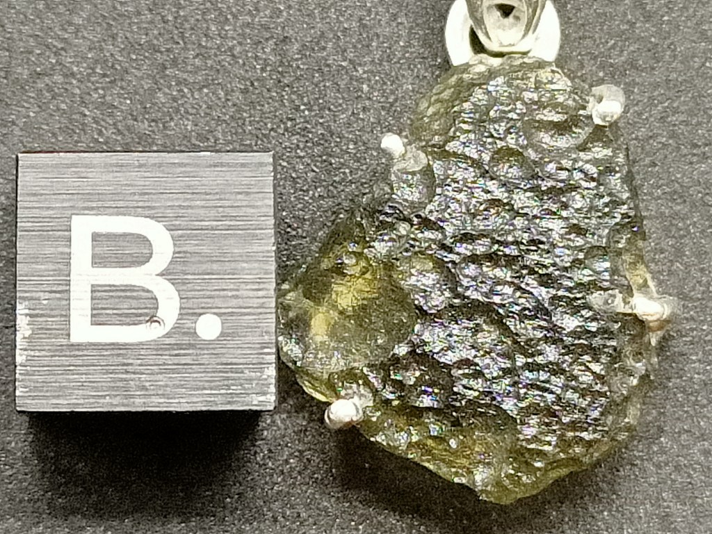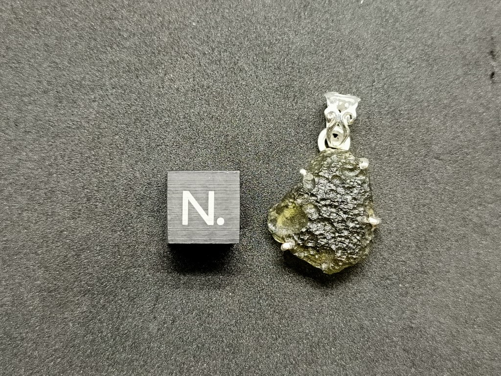 Pendentif Moldavite brute. Une moldavite et structure en argent 925. Dimensions du pendentif en millimètres 17.0 * 15.3* 6.3 Dimension du passant en millimètres 6.0 65.00 euros * Référence : PENDMOLDA12020 * Frais de port compris.