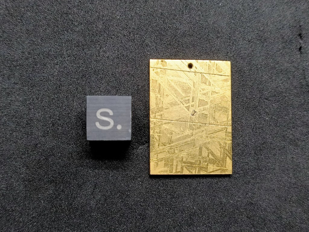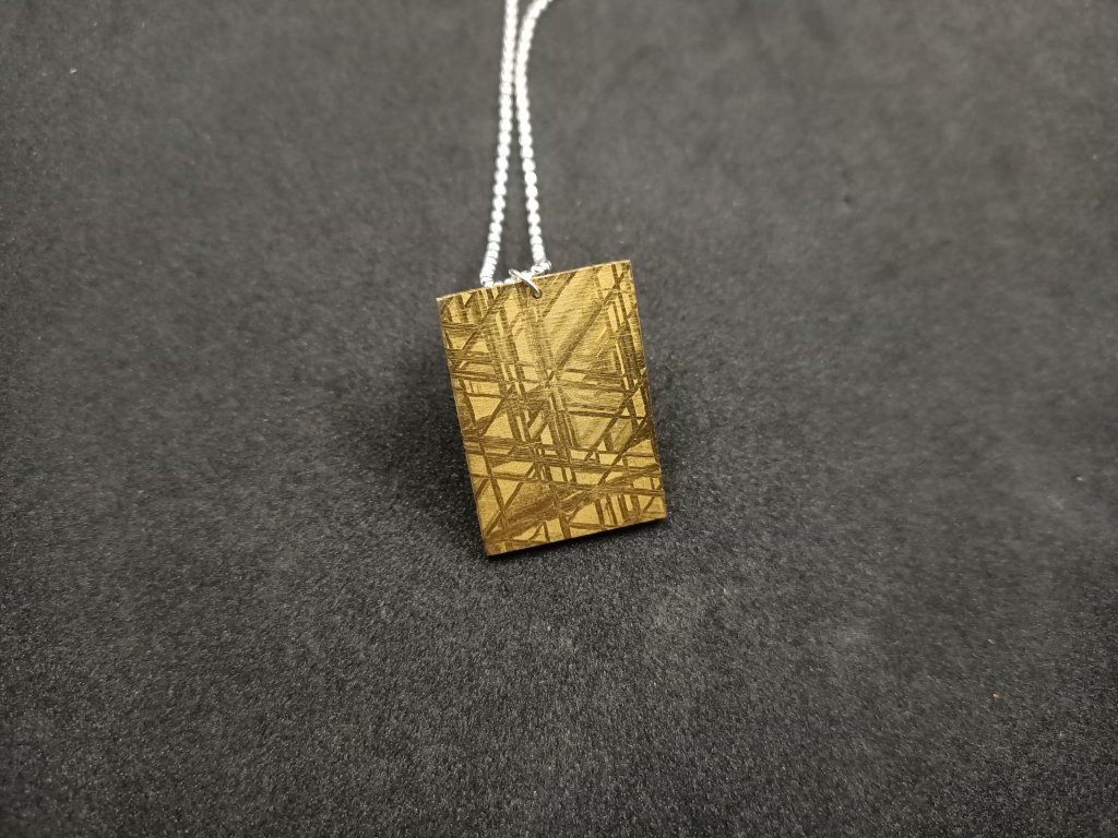 Pendentif Muonionalusta Or Une météorite de type fer plaquée Or. Dimensions du pendentif en millimètres 27.8 * 20.0 * 1.7 Dimension du passant en millimètres 5.0 195.00 euros * Référence : PENDMUOR12020 *Frais de port compris.