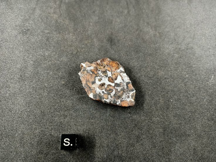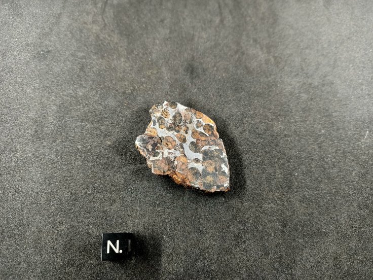 Sericho, tranche. Météorite de type Pallasite. TKW = > 2 T. 2017, Kenya. Dimensions en millimètres 54.0 * 39.0 * 6.6 Masse en grammes 35.8 g Belle petite tranche stable ! 80 euros * Référence : SERT358 * Frais de port compris.